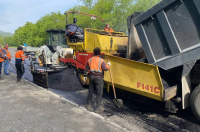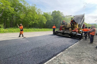«На участке осуществлено высотное регулирование предперекрытий колодцев, очистка ливневой канализации, ямочный ремонт. На данный момент ведётся укрытие верхнего слоя дороги пятисантиметровым слоем щебеночно-мастичного асфальтобетона. Так предусмотрено техническим заданием. Также на участке ведутся работы по установке бордюрных камней на заездных карманах автобусных павильонов, а также асфальтирование примыканий. Работы идут с опережением графика, планируем завершить до конца лета», - сказал представитель подрядной организации Олег Куц.