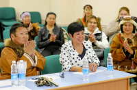 Члены жюри - Максим Дуткин, заслуженный работник культуры Республики Саха (Якутия), заведующий информационно-методическим отделом этнокультурного центра «Инди»; Мария Илюшина, носитель вокального творчества коренных малочисленных народов Севера, Сибири и Дальнего Востока; Елена Жукова, ведущий методист отдела сохранения нематериального культурного наследия КЦНТ - внимательно слушали каждое выступление.