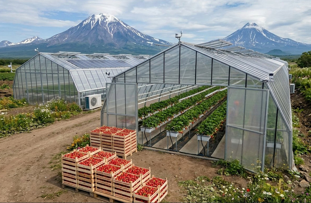 На Камчатке, несмотря на экономические сложности, малый и средний бизнес продолжает запускать новые проекты. Один из свежих примеров — компания «Велес» под руководством Ольги Молостовой. Она взялась за выращивание клубники: на территории агрокомплекса «Зелёновские озерки» в Елизовском районе строят две теплицы, склад и административное здание. Предприятие планирует собирать с июня по сентябрь до 35 тонн ягод на открытом грунте, а зимой получать ещё 10 тонн в теплицах.