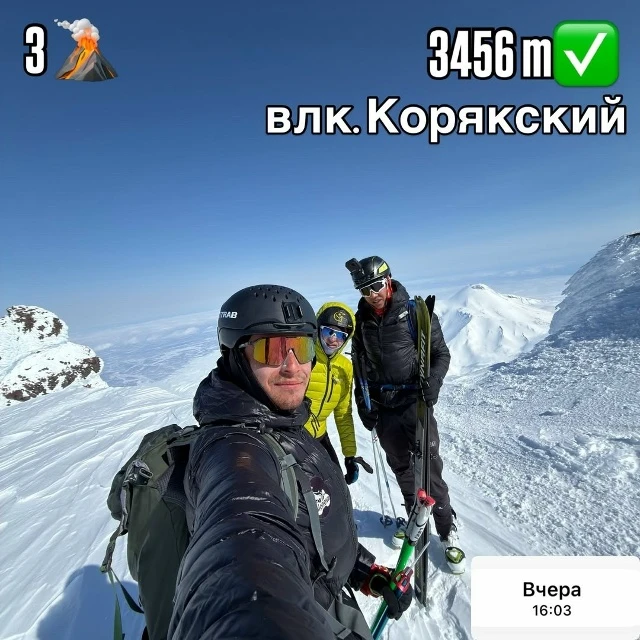 — вулкан Корякский (3456 м) — 16:03;