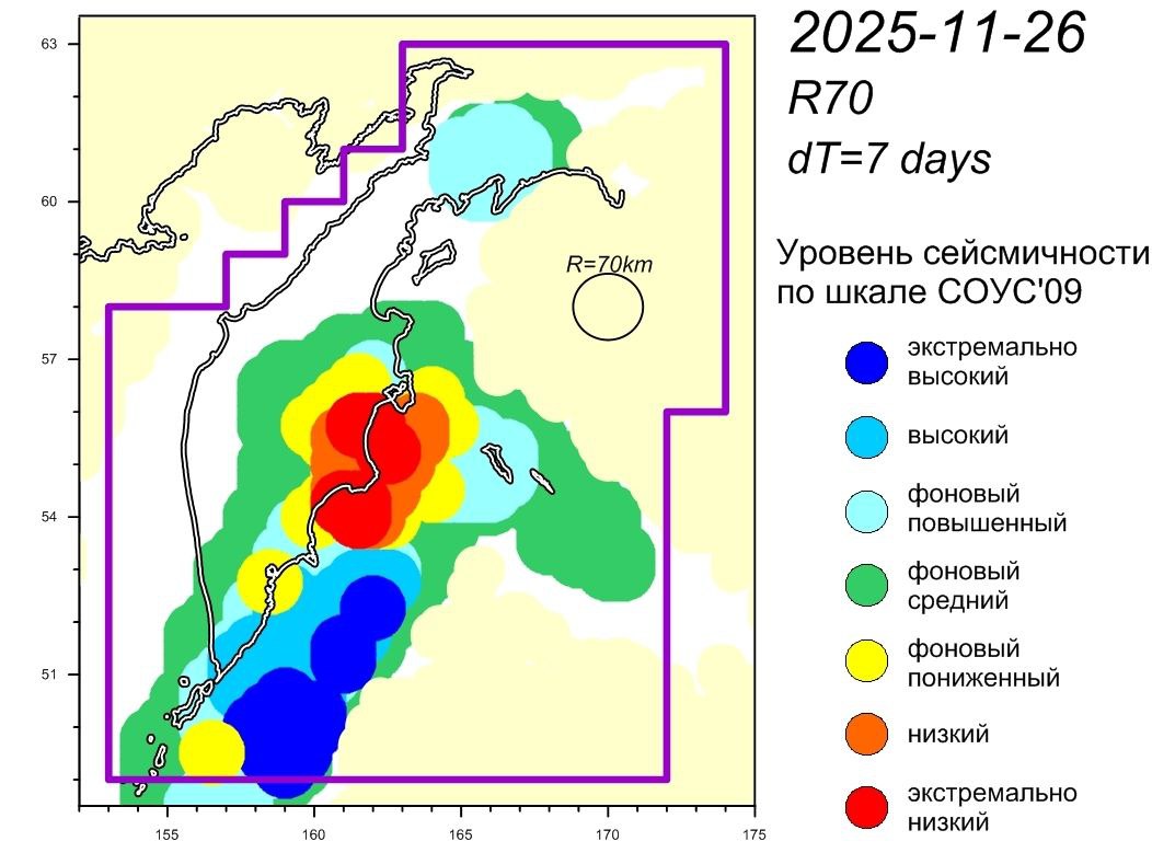 Наиболее сильные сотрясения, до 4 баллов, были зарегистрированы 23 ноября в районе мыса Шипунский и 25 ноября в районе Вилючинска. Самое мощное землетрясение недели магнитудой 6.0 произошло 21 ноября и ощущалось в Северо-Курильске и Петропавловске-Камчатском.