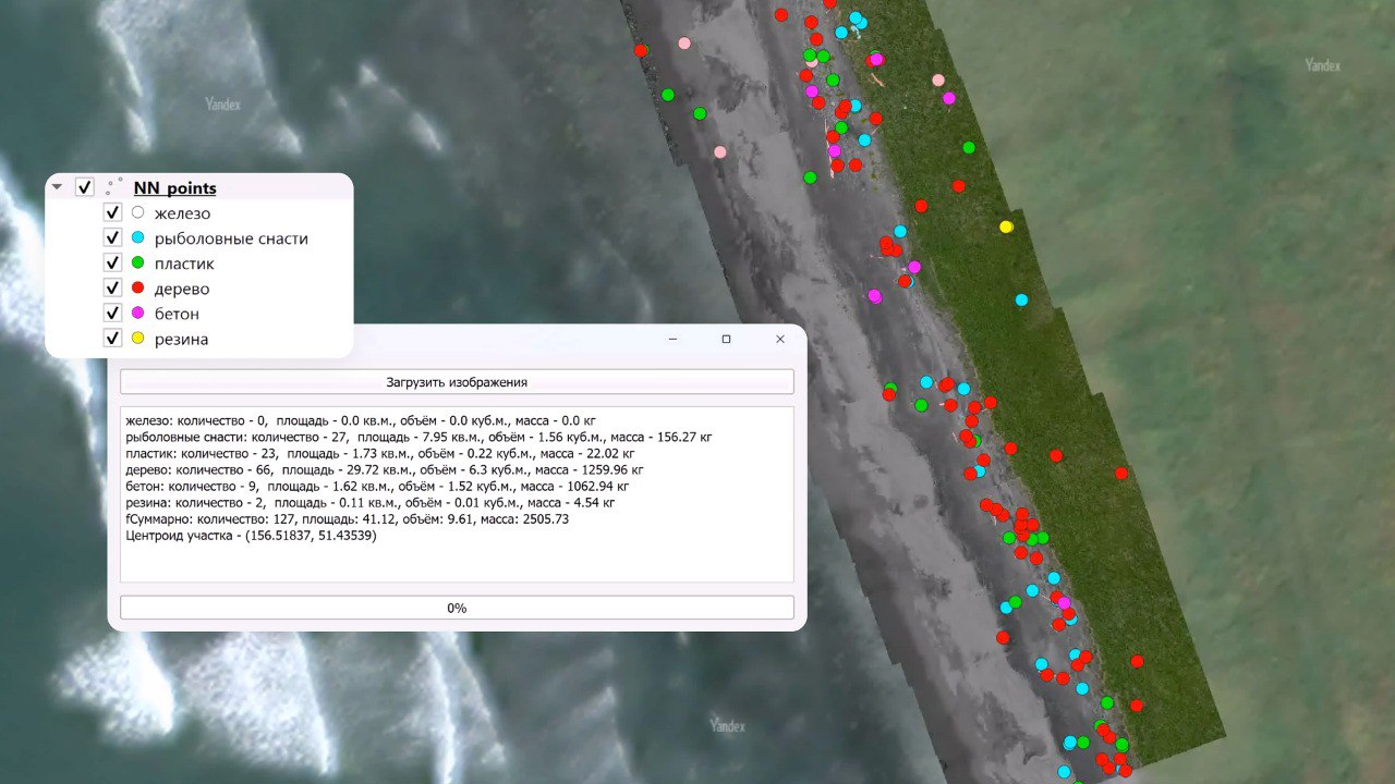 Разработчики рассказали, что нейросеть анализирует аэрофотоснимки побережья и делит мусор на шесть типов: рыболовные сети, железо, резина, крупный пластик, бетон и древесина. Точность классификации – выше 80%. Модель отмечает координаты расположения мусора на карте, указывает его состав и вес. Эти данные помогают рассчитать размер необходимой группы людей и количество техники для уборки.