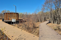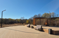 На территории появились: освещённая пешеходная тропа, смотровая площадка, скалодром.