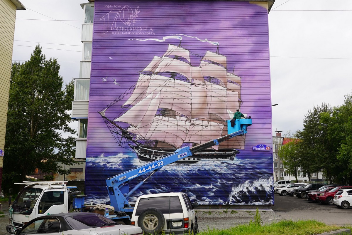 В 2024 году столица Камчатки отмечает 170-летие со дня героической обороны Петропавловска от нападения англо-французской эскадры. Подчеркнуть эту тематику в рамках фестиваля «Авача стрит-арт – 2024» ранее поручил художникам глава города Константин Брызгин.