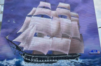 «Автор изобразил мощь фрегата «Аврора», экипаж которого участвовал в победной обороне Петропавловского порта в 1854 году», - сообщает Telegram-канал администрации Петропавловска.