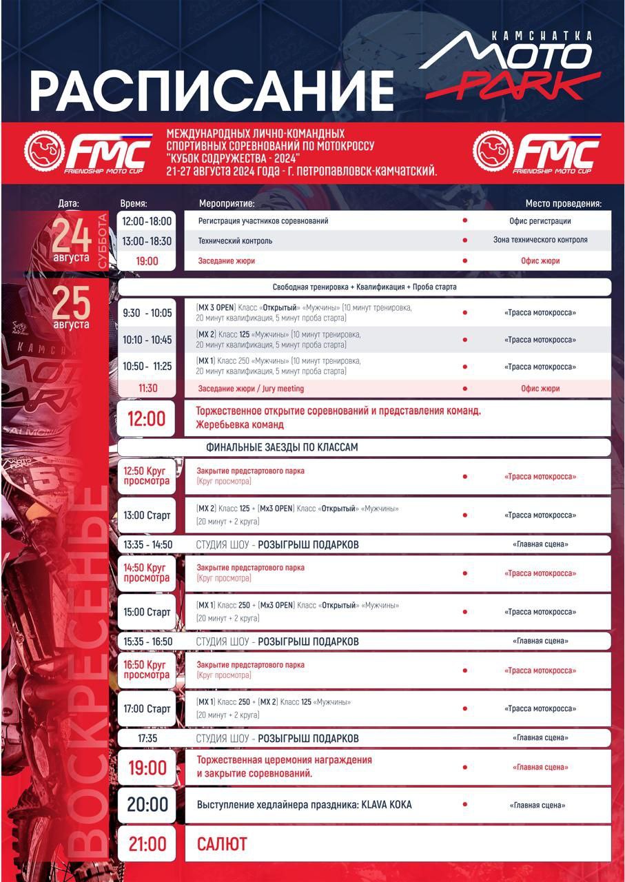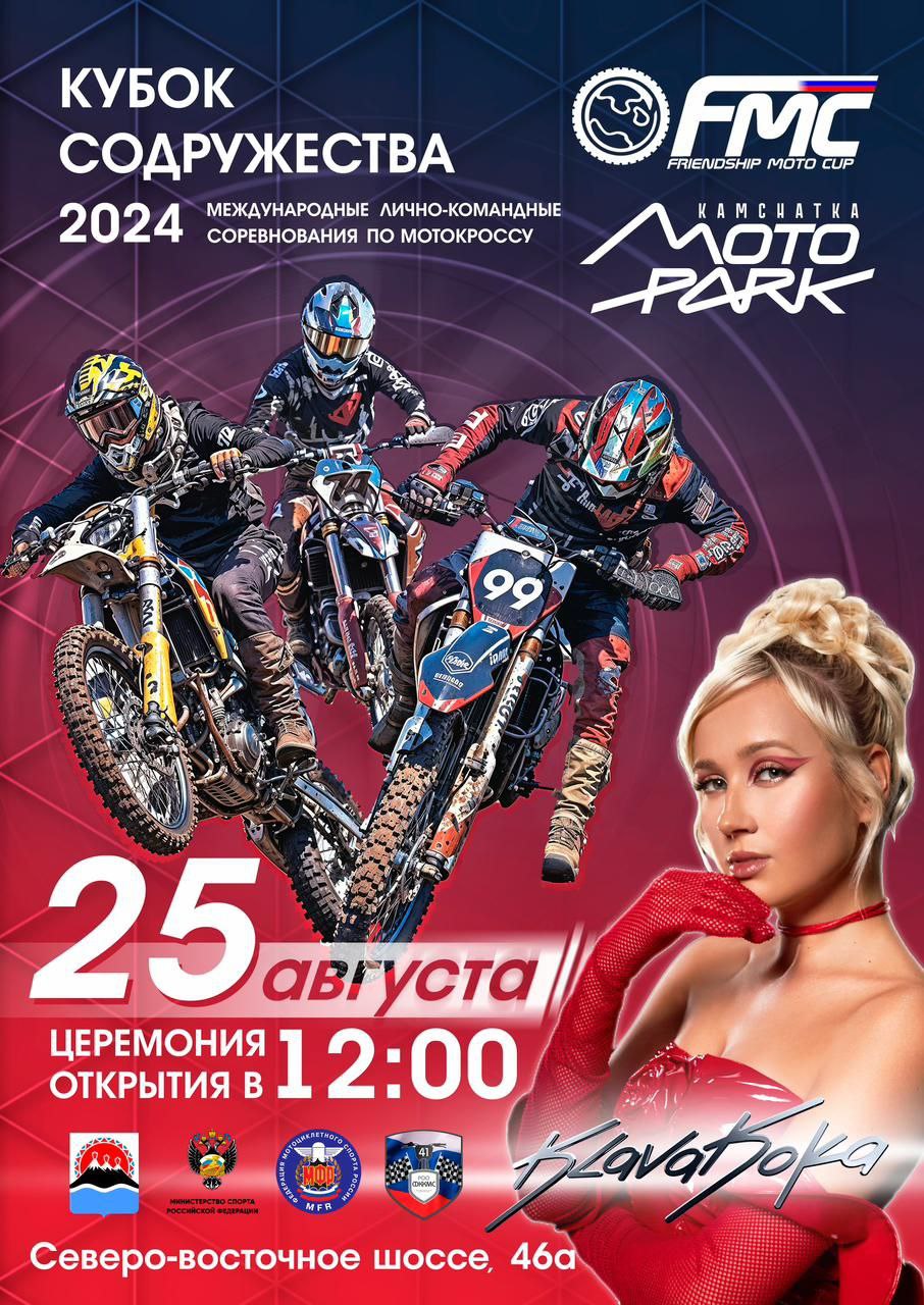 В Камчатском крае 25 августа пройдут Международные соревнования по мотокроссу «Кубок содружества-2024», где примут участие представители 18 стран, в том числе из Армении, Азербайджана, Беларуси, Индии, Италии, Ирана, Казахстана, Китая, Кореи, Кыргызстана, Молдовы, Монголии, Таджикистана, Узбекистана, Швейцарии и Шри Ланки. На участие в мероприятии заявлено около 140 гостей.