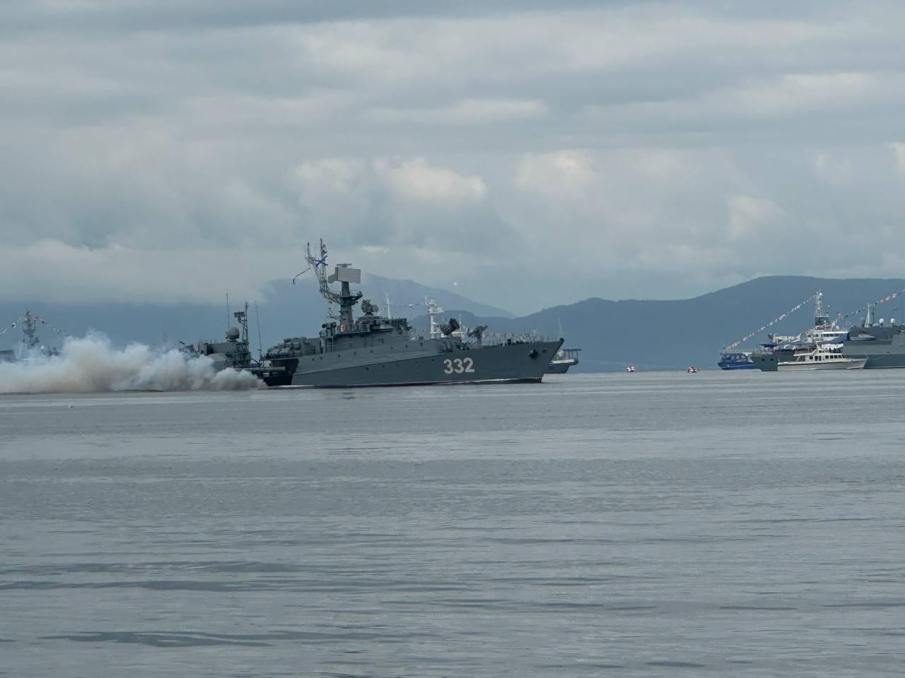 На береговой линии Авачинской бухты в центре Петропавловска прошел парад военных кораблей в рамках празднования Дня Военно-морского флота России.