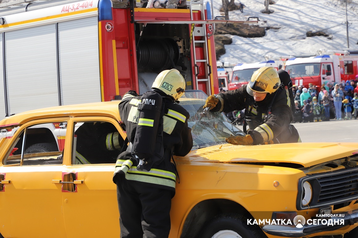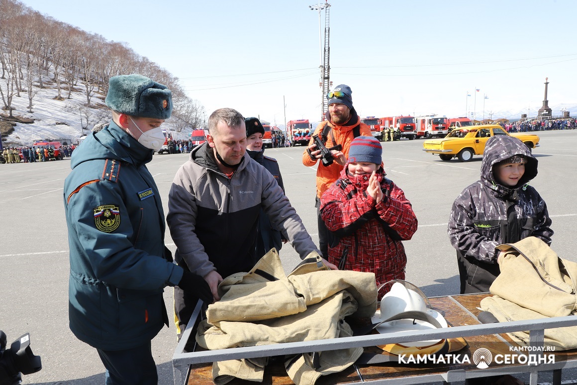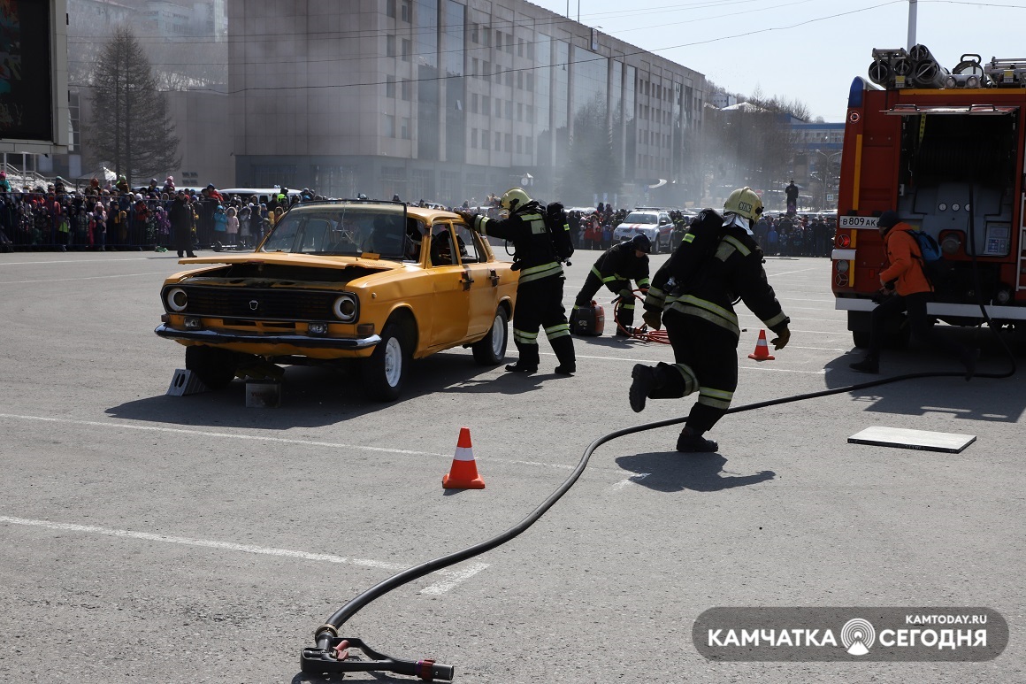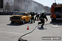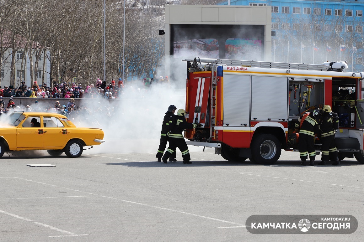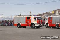День пожарной охраны отпраздновали на Камчатке. Шоу поющих фонтанов, показательные выступления по ликвидации ДТП и вальс пожарных автомобилей — это и многое другое смогли увидеть жители Камчатки на праздновании 372-ой годовщины пожарной охраны. Зрелищное мероприятие прошло в субботу, 17 апреля, в 11:30 на главной площади краевого центра.
