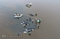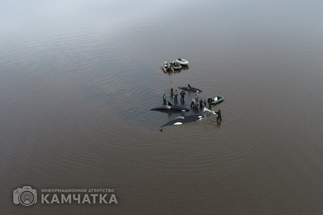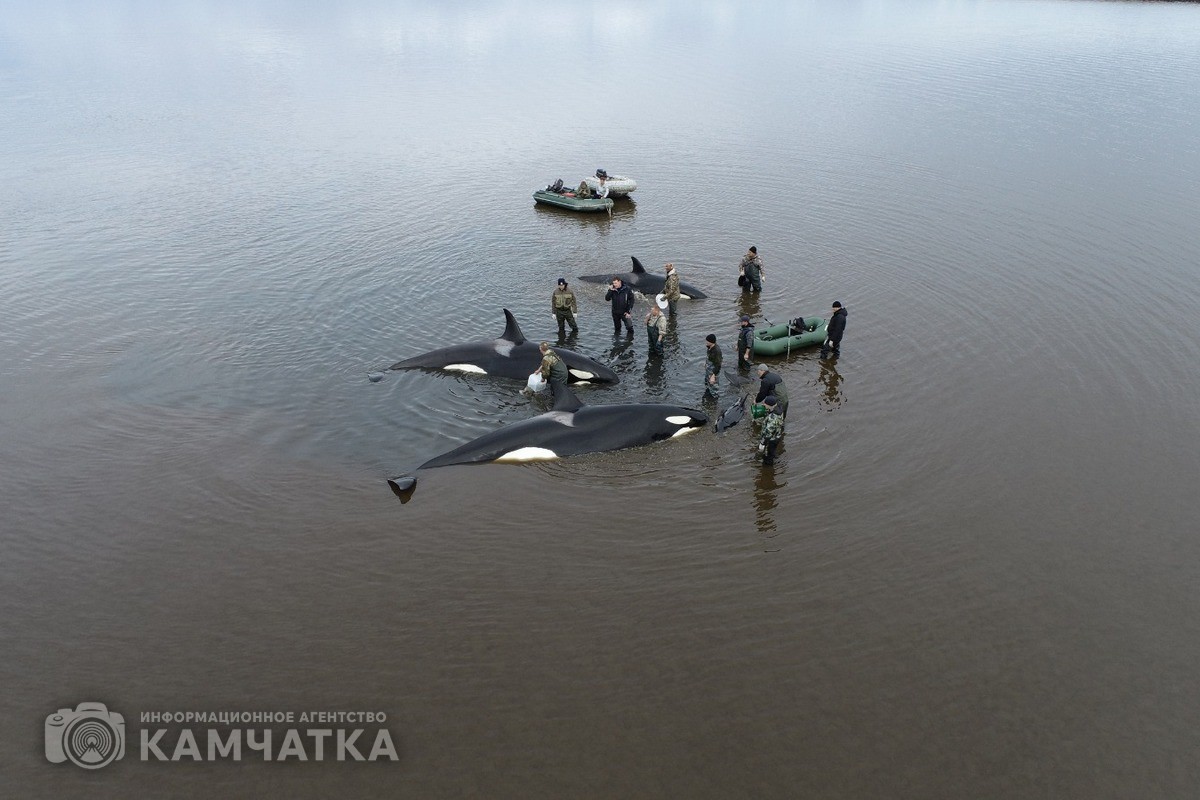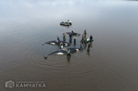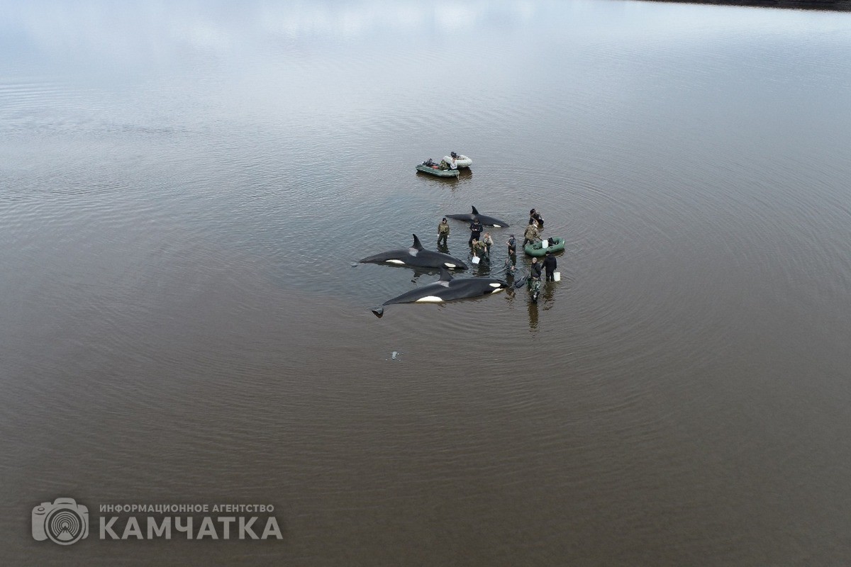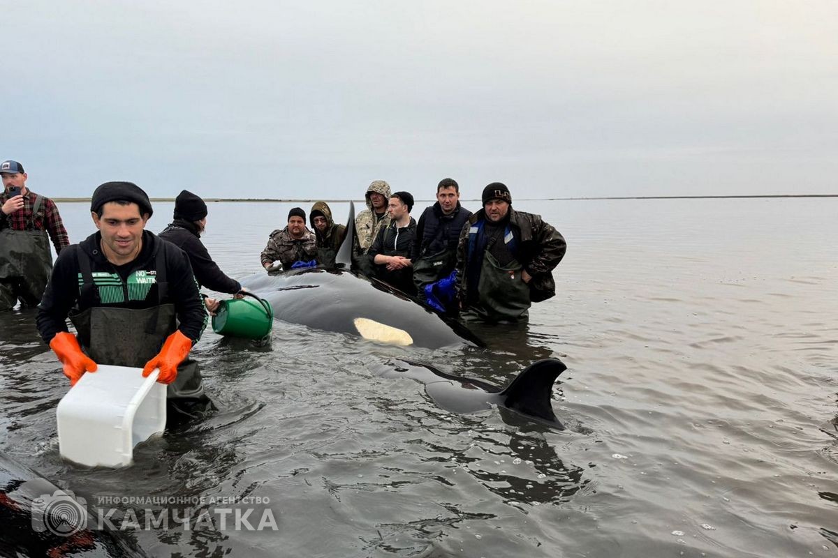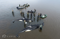 Как ранее сообщало ИА «Камчатка», группа косаток 2 октября попала в плен лимана у села Устьевого. Так как из-за отлива и мелководья млекопитающие не могут дышать, волонтёры весь день поливали их водой. В противном случае косатки могли задохнутся. На месте происшествия находились более 30 человек - инспекторы ГИМС МЧС России, сотрудники местного пожарного поста КГКУ «ЦОД», глава Соболевского района Андрей Воровский и волонтёры.
