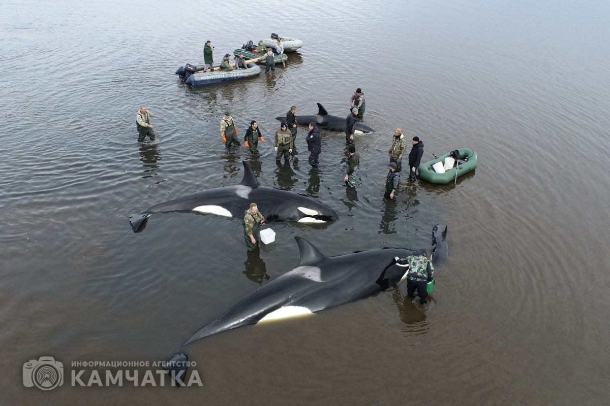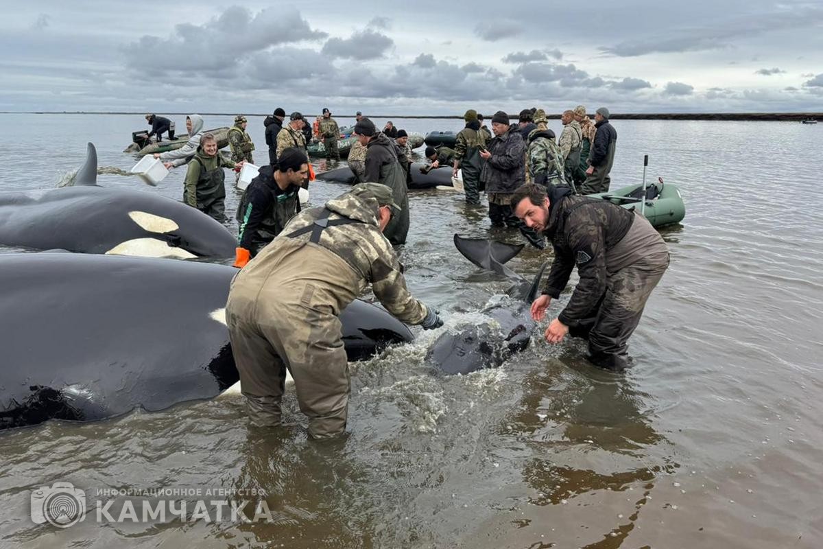Министр по чрезвычайным ситуациям Камчатского края Сергей Лебедев рассказал об оперативной ситуации у села Устьевого в Соболевском районе, где накануне, 2 октября, группа косаток попала в плен лимана.