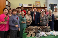 Теплые вещи, заботливо связанные руками участниц «Ковчега», были переданы председателю Городской Думы Андрею Лиманову для отправки бойцам в зону СВО.
